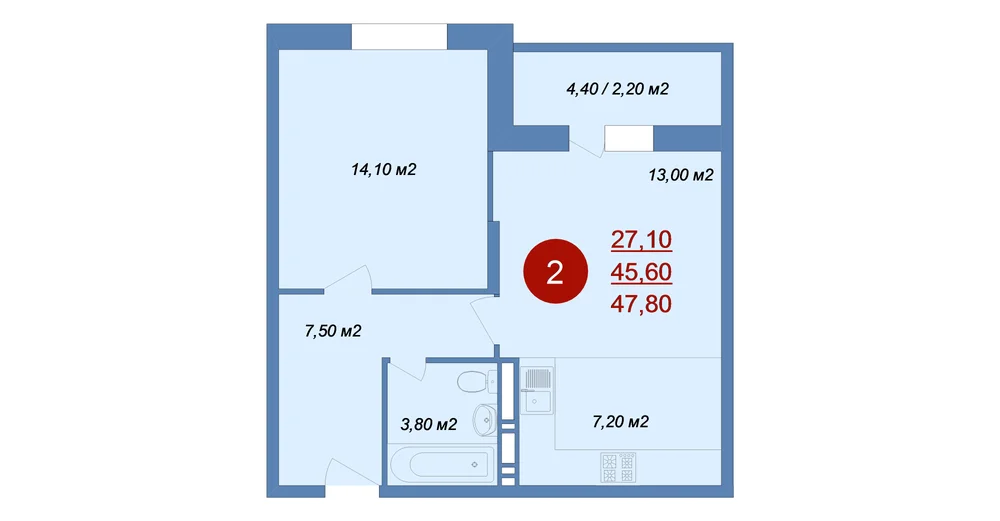 2-комнатная 47.8 м2