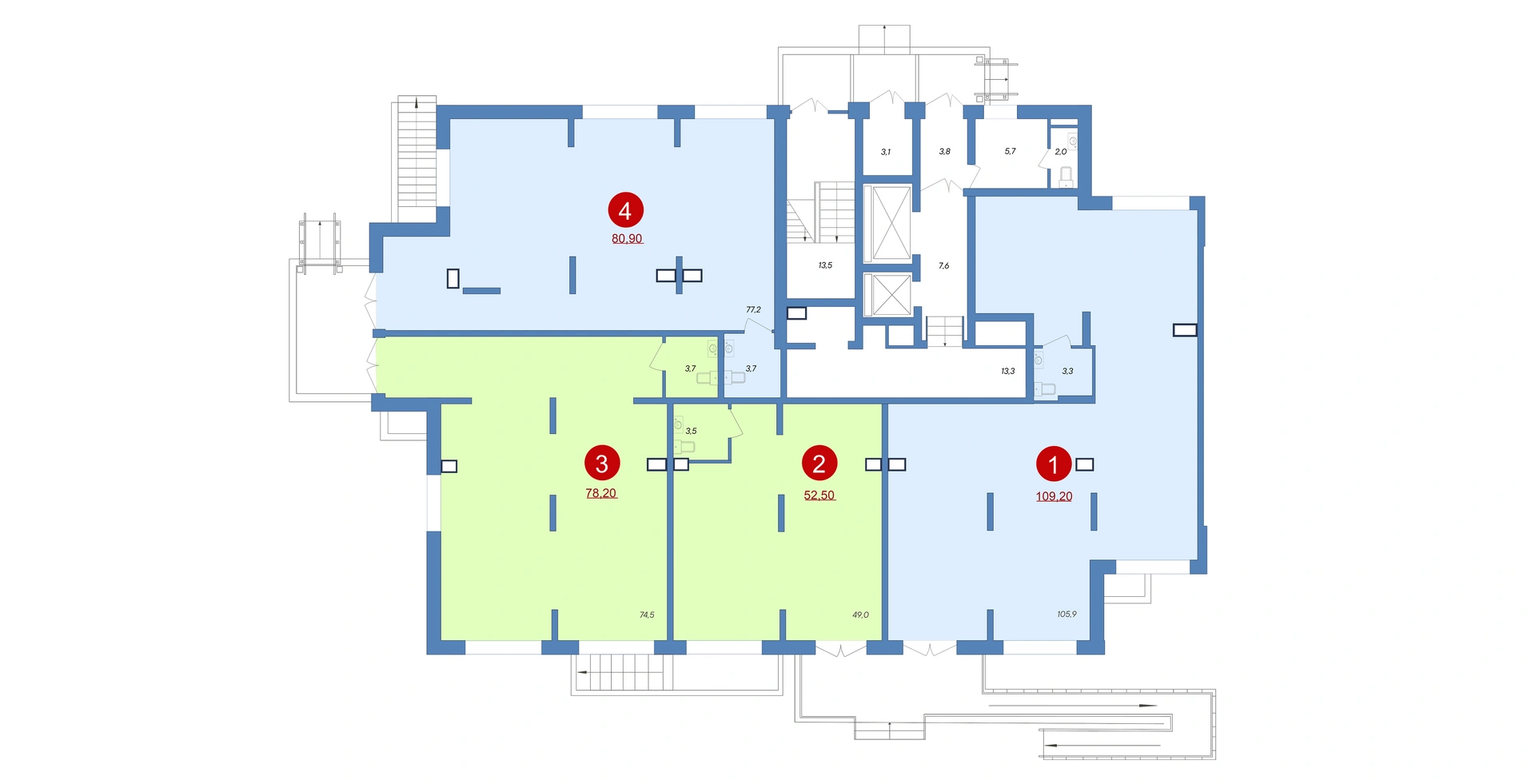 Уникальные возможности для бизнеса в динамично развивающемся районе с высоким потенциалом роста. Расположены на первых этажах здания, помещения обладают отдельными входами и удобными подъездными путями, обеспечивая комфортный доступ клиентам и посетителям.